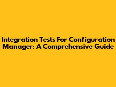 Integration Tests For Configuration Manager: A Comprehensive Guide